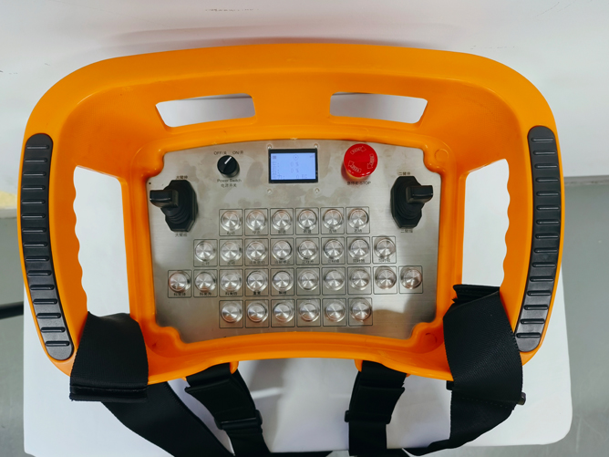產品級別:工業級搖桿+比例桿(開關量+模擬量)遙控器;發射布局及功能執行:啟動+急停,1個四向五速搖桿,1個四方向模擬量比例桿或1個兩方向模擬量比例桿,6個按鍵+2個選擇開關,1號搖桿四方五速搖桿用于控制塔吊的吊鉤上下五速以及吊鉤前后行走3速,2號比例桿用于控制塔吊吊臂的左旋