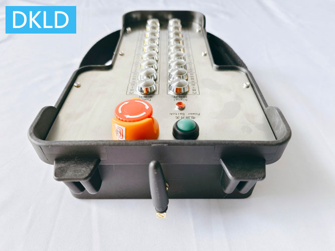 本机型产品型号DH-Z18F,为标准工业级无线遥控器,遥控距离100米半径,具备12个不锈钢按键,按键直径18mm,触感良好,可带手套操作,面板不锈钢材质,结构强度高,抗摔打、耐挤压、可承受高温迸溅无影响。收发信号执行灵敏度达-110dbm,响应时差40-65mS,瞬间触发、瞬间响应执行,每个按键对应接收器端1路继电器输出,无源干接点,触点容量250V/10A、直流30V/5A,后端可连接PLC、接触器、继电器、高低电平触点、开关量电磁阀等开关量控制回路。