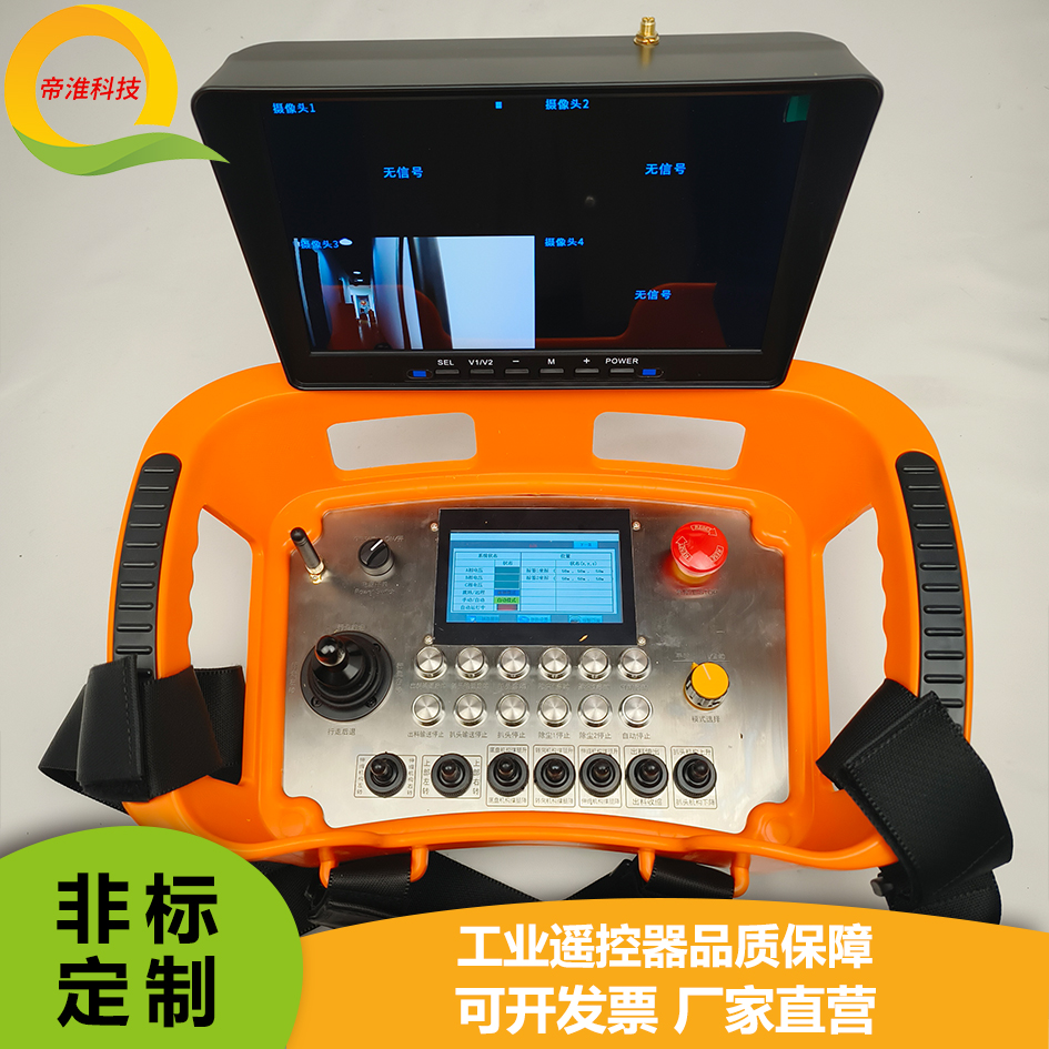 4个摄像头画面10寸视频显示及4.3寸屏状态显示模式双向扒谷机工业无线遥控器