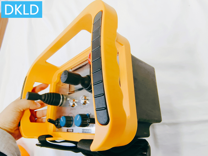 如果发射器端布局为1个万向无极摇杆,设计前后左右4个方向推动控制,及4个方向的夹角控制输出,用于底盘的前后左右任意方向行走控制,前后方向下压要干的幅度越大则速度越快,幅度越小则速度越慢。摇杆Y轴方向推动控制时,首先对应开关量控制输出,继续推动再执行开关量控制方向的调速0-10V模拟量输出控制。研磨正反转输出,布局为1个三位自锁保持模式扭子开关即拨杆,及1个调速旋钮,“锁定/解锁”按钮1个,还有启动+急停按键,产品定制型号DH-Z1YB3S1M(DC24V/100米/0-10V/1发1收)其他电压通过增配外置变压器转压适配!